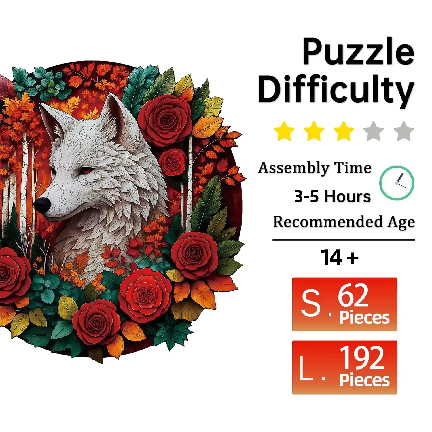 | Size:L(A3) | Approx 28×28 cm (11×11 inches) – 220~260 pcs, assembly time 6-8 hours. |