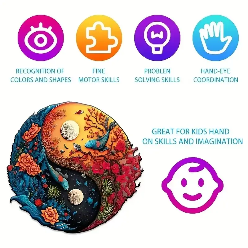 Dive into a world of tranquility with our Yin Yang Sea Life Wooden Jigsaw Puzzle! This beautifully crafted puzzle features intricate wooden pieces that come together to form the iconic yin and yang symbol, showcasing the harmony of sea life. Perfect for puzzle enthusiasts and anyone looking to unwind, this eco-friendly puzzle not only sharpens your mind but also adds a touch of zen to your space. Get ready to piece together a serene oceanic scene while enjoying quality time with family and friends!